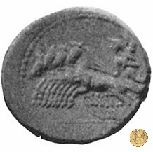 Minerva su quadriga verso sinistra; tiene la lancia e le redini con la mano destra, un trofeo con la sinistra.