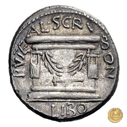 Testa velata della Concordia a destra, con diadema. Pozzo (puteal Scribonianum) ornato con ghirlanda d'alloro e con due lyrae ai lati. Alla base un martello (o una tenaglia).