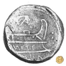 Prora di nave a destra, con C. ME TE LL oppure C. ME TELL oppure C. METE(L) inscritto sulla fiancata. In alto una testa di elefante; davanti tre globetti; in basso: ROMA