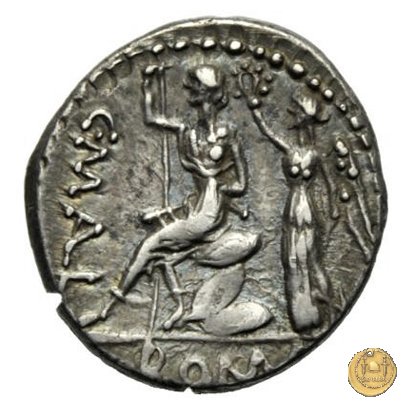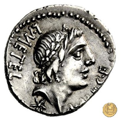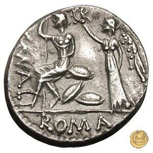 | Emissione congiunta di tre magistrati monetari: L. Caecilius Metellus - A. Postumius Sp.f. Albinus - C. Publicius Malleolus C.f. (Cr. 335/2 - scheda R-G108/2). La differenza tra le due emissioni è che in quello della Poblicia sono assenti i nomi dei due magistrati al D/ |