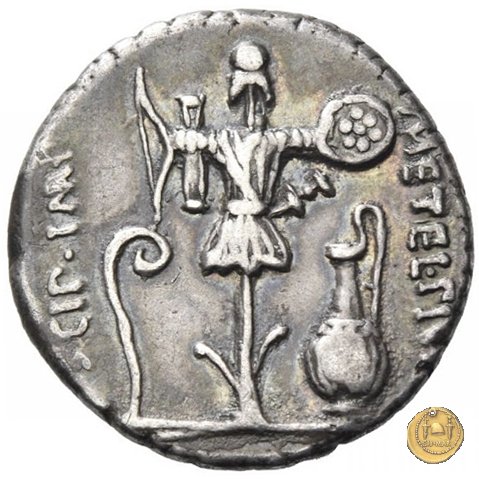 1 L'emissione è curata da Q. Caecilius Q.f. Q.n. Metellus Pius Scipio Nasica insieme al luogotenente P. Licinius P.f. Crassus Iunianus Damasippus.