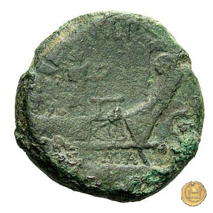 Nave a remi navigante verso destra, con il pilota al timone e la Vittoria che regge una corona vittata; uno stendardo a prua. In alto: P. CALP ; davanti: S ; in basso un delfino. Inscritto sulla fiancata della nave: ROMA