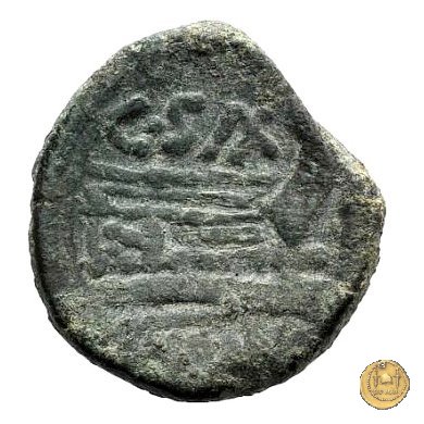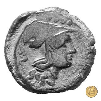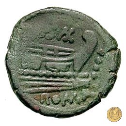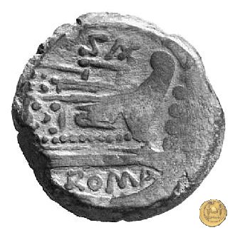 Testa elmata di Minerva a destra. In alto quattro globetti. Prora di nave a destra. In alto: SAX  ; davanti quattro globetti; in basso: ROMA