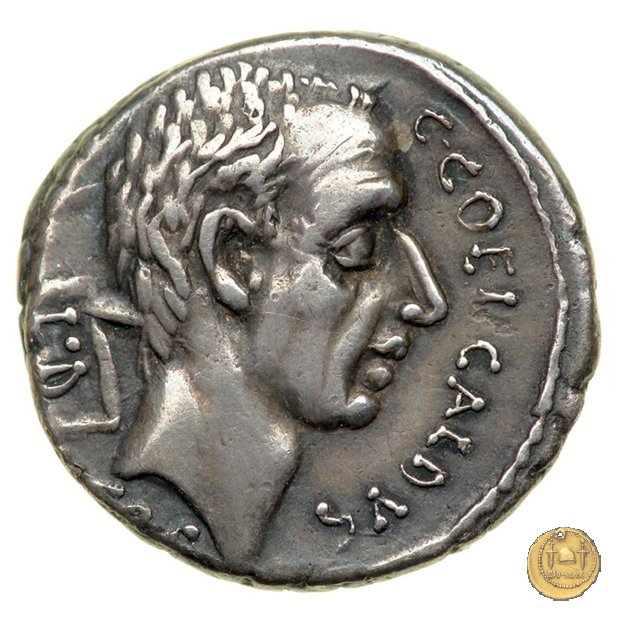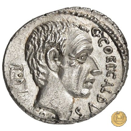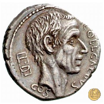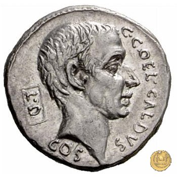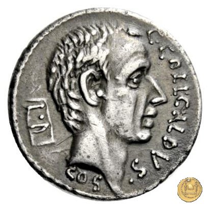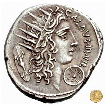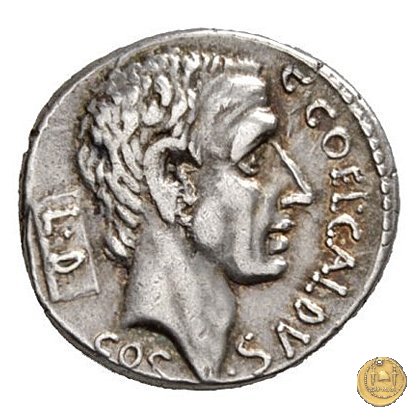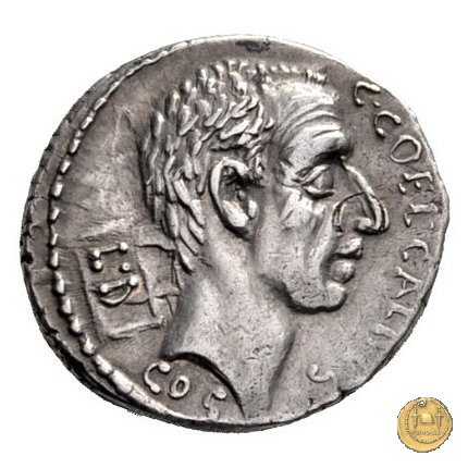 Testa del console C. Coelius Caldus a destra. A sinistra, su tavoletta: L. D