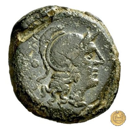 Testa elmata di Roma a destra. Dietro un globetto.