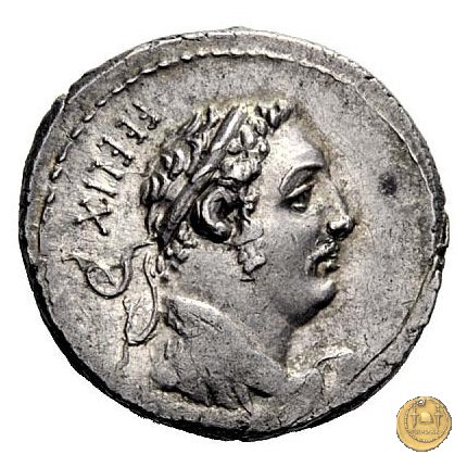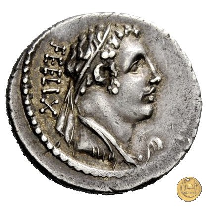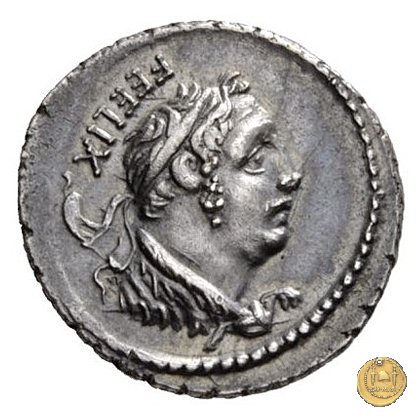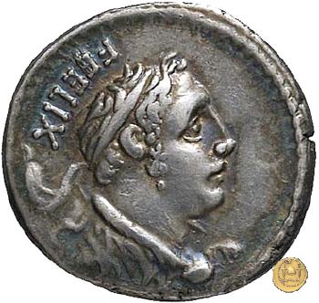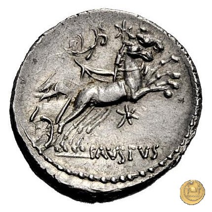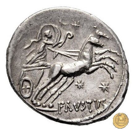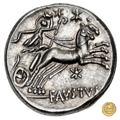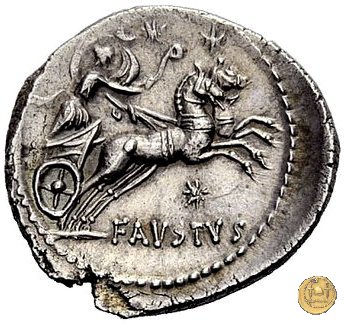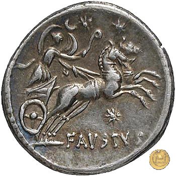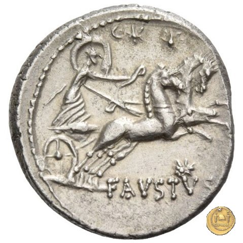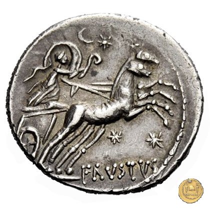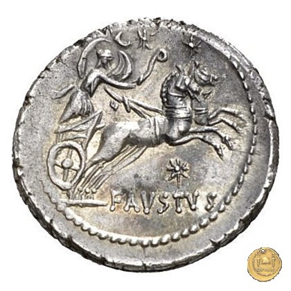 Diana su biga verso destra; tiene le redini con la mano sinistra, il lituus con la destra. In alto un crescente. Nel campo tre o quattro stelle.
