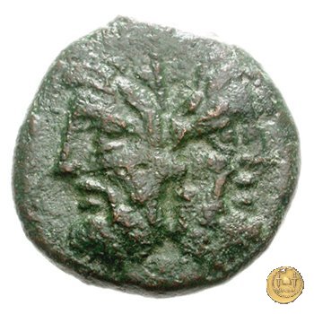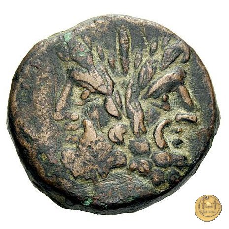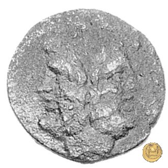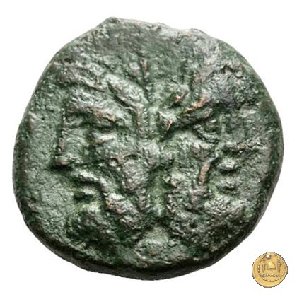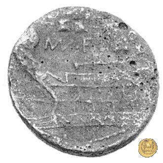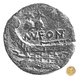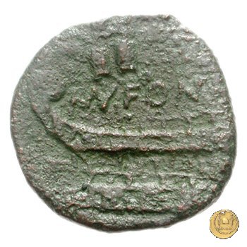 Testa laureata di Giano. In alto: I Prora di nave a sinistra. In alto due pilei sormontati da stelle e MN . FONT