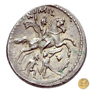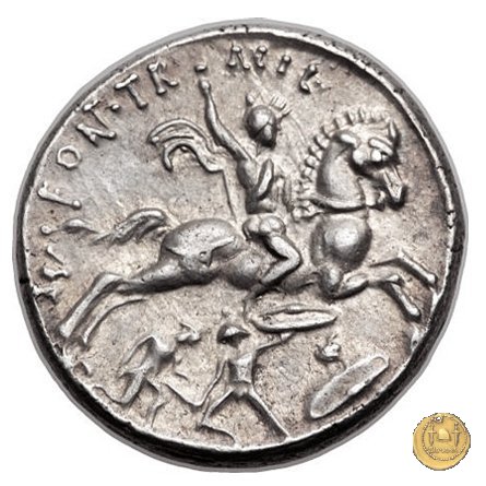 Busto drappeggiato di Marte a destra, con elmo attico; un trofeo d'armi sulle spalle.