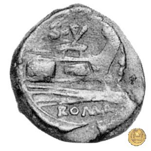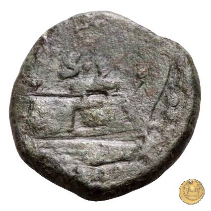 Testa elmata di Minerva a destra. In alto quattro globetti. Prora di nave a destra. In alto: S. FV  ; davanti quattro globetti; in basso: ROMA