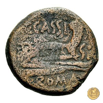 Testa di Liber a destra, con corona di edera. Dietro: S e due globetti. Prora di nave a destra. In alto: C. CASSI ; davanti: S e due globetti; in basso: ROMA