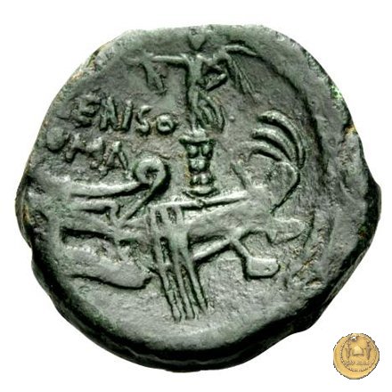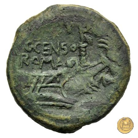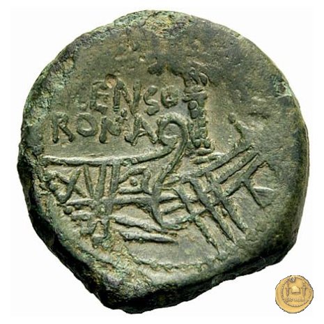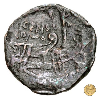 Due navi affiancate: la prima ostenta la prua, la seconda la poppa; su quest'ultima c'è una colonna con la statua della Vittoria con corona. A sinistra: C. CENSO / ROMA