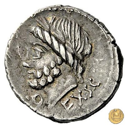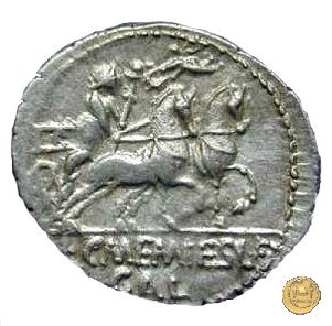 Testa laureata di Saturno a sinistra. Dietro l'harpa. Davanti una lettera di controllo. Venere su biga al passo verso destra; tiene le redini con entrambe le mani, lo scettro con la sinistra. In alto Cupido in volo con corona.