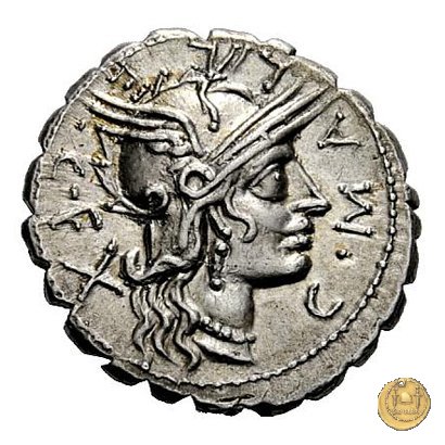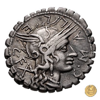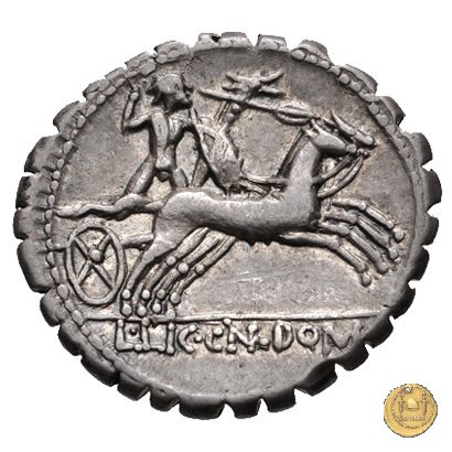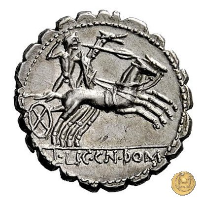 | L'emissione è firmata da L. Licinius Crassus e da Cn. Domitius Ahenobarbus come "duovir coloniae deducendae" e alternativamente da altri cinque magistrati monetari come "curatores denariorum flandorum": M. Aurelius Scaurus (Cr. 282/1 scheda R-G168/1) - L. Cosconius (Cr. 282/2 scheda R-G37/1) - C. Poblicius Malleolus (Cr. 282/3) - L. Pomponius (Cr. 282/4 scheda R-G287/1) - L. Porcius Licinus (Cr. 282/5 scheda R-G291/1). |