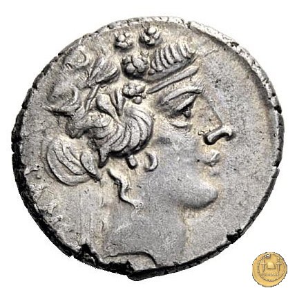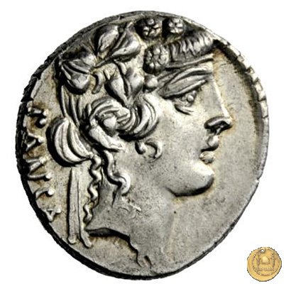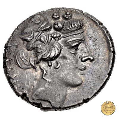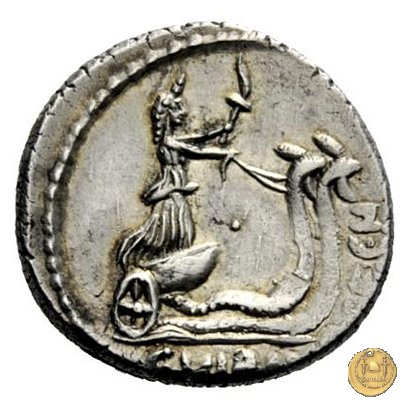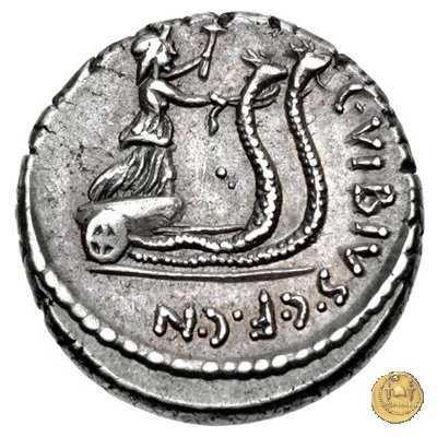Testa di Liber a destra, con corona d'edera. Cerere su biga di serpenti verso destra; tiene una torcia accesa con la mano sinistra, le redini con la destra.