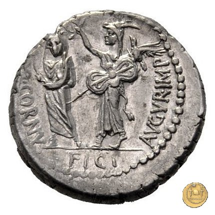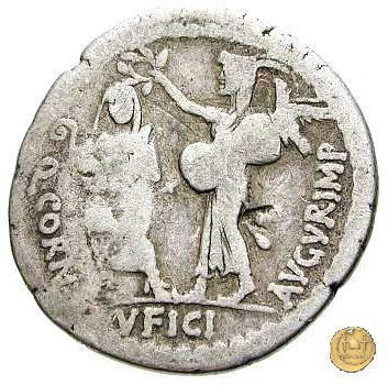 A sinistra Q. Cornuficius con il capo velato; tiene il lituus con la mano destra. A destra Giunone Sospita, con copricapo di pelle caprina e con un corvo sulla spalla; tiene la lancia e lo scudo con la mano sinistra ed incorona con la destra Q. Cornuficius.