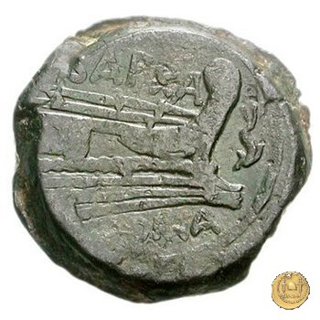 Testa laureata di Giano. In alto: I Prora di nave a destra. In alto: SAFRA ; davanti un delfino; in basso: ROMA
