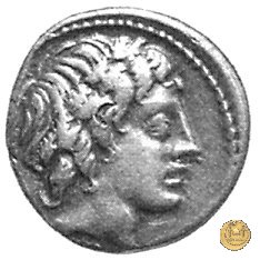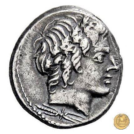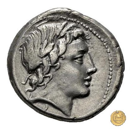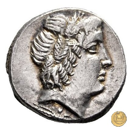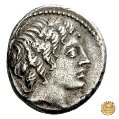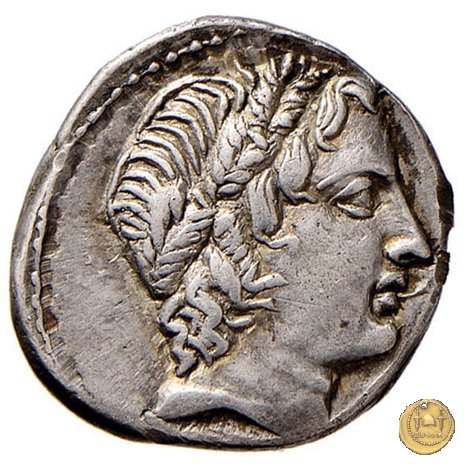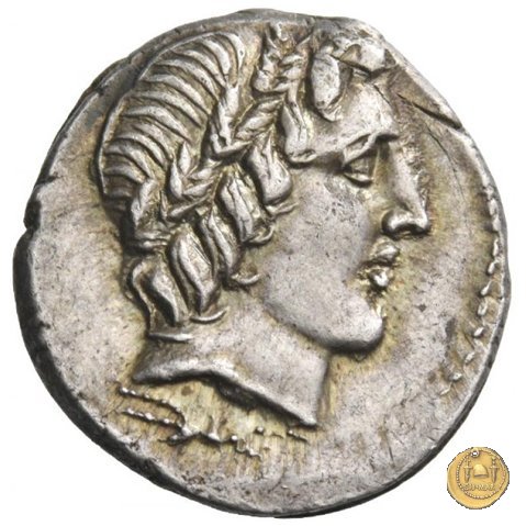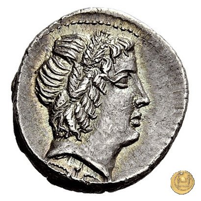 Testa di Apollo a destra, con corona di foglie di quercia. In basso un fulmine.
