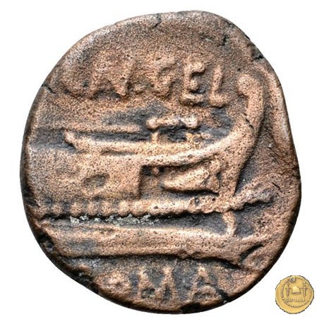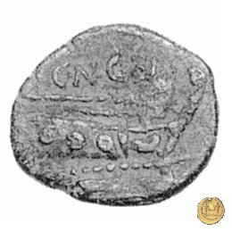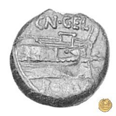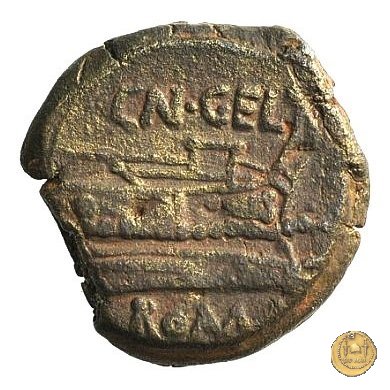 Testa di Ercole a destra, con il capo avvolto nella pelle leonina. Dietro tre globetti. Prora di nave a destra. In alto: CN. GEL oppure CN. GELI ; davanti tre globetti; in basso: ROMA
