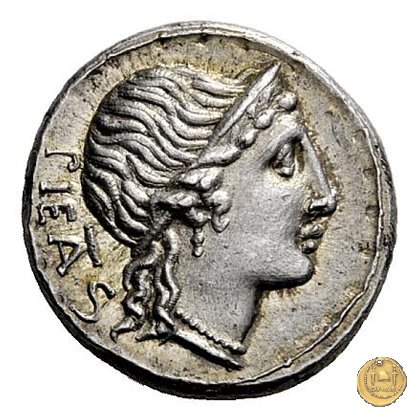 Testa della Pietà a destra, con diadema. Anphinomos (oppure Anapias) in corsa verso destra, trasporta l'anziano padre sulla spalla: entrambi volgono il capo all'indietro.