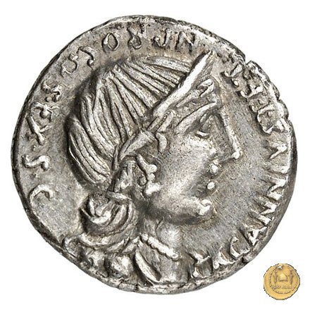 Testa femminile a destra, con diadema. Davanti una bilancia.
