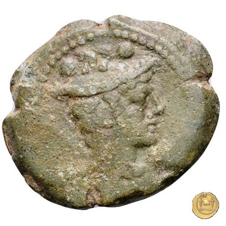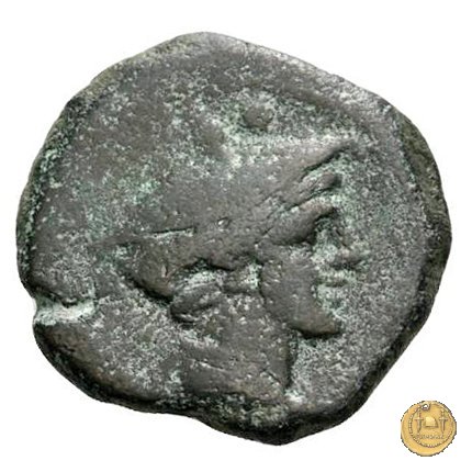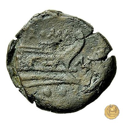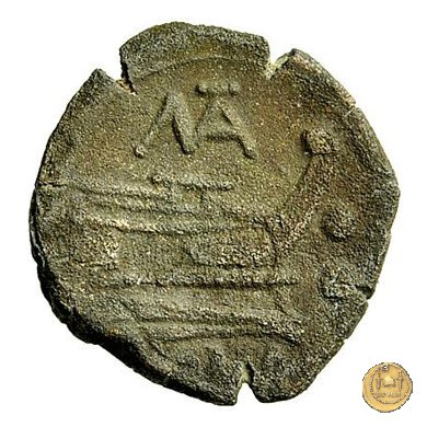 Testa di Mercurio a destra, con petaso alato. In alto due globetti. Prora di nave a destra. In alto: MAT  ; davanti due globetti; in basso: ROMA