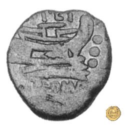 Testa di Ercole a destra, con il capo avvolto nella pelle leonina. Dietro tre globetti. Prora di nave a destra. In alto: OPEI ; davanti tre globetti; in basso: ROMA