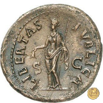 Busto di Galba, laureato, rivolto verso destra. La Libertas, drappeggiata e rivolta verso sinistra; nella mano destra un pileo, nella sinistra, un'asta.