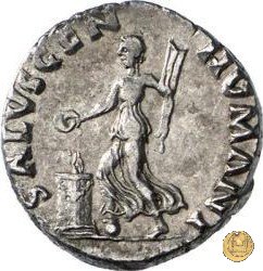 Figura femminile, drappeggiata e rivolta verso sinistra, con il piede destro su di un globo; nella mano destra una patera, nella sinistra un timone; di fronte, un altare.
