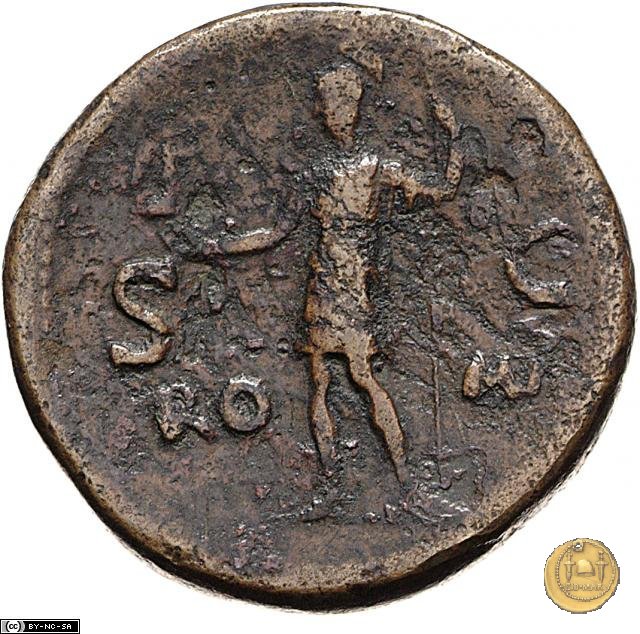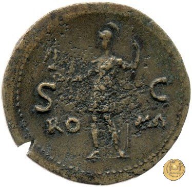 Roma, elmata e in abbigliamento militare, in piedi, rivolta verso sinistra; nella mano destra una Vittoria su globo e nella sinistra una lancia.