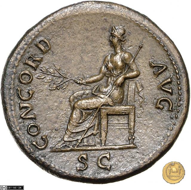 La Concordia, drappeggiata e seduta verso sinistra su di un trono; nella mano sinistra un ramo di olivo, nella destra uno scettro.