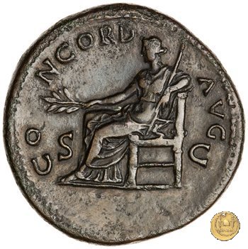 La Concordia, drappeggiata e seduta verso sinistra su di un trono; nella mano sinistra un ramo di olivo, nella destra uno scettro.