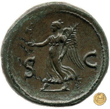Busto di Galba, laureato con foglie di quercia e drappeggiato, rivolto verso destra. Una Vittoria, che vola o saltella verso sinistra; nella mano destra un palladio, nella sinistra, una palma.