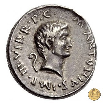 | 41 BC2 | R-I10/10-2 | Itinerante con M. Antonius | 516/5 | Crawford 516/5