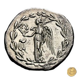 Testa di Marc'Antonio a destra. La Vittoria stante a sinistra; tiene la corona vittata con la mano destra e regge con la sinistra un ramo di palma sulla spalla. Una corona d'alloro come contorno.