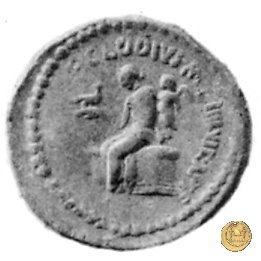 Testa di Ottaviano a destra. Venere seduta a sinistra su cippus; tiene con la mano destra un uccellino (una colomba) ed abbraccia con la sinistra Cupido che vola sulle spalle.