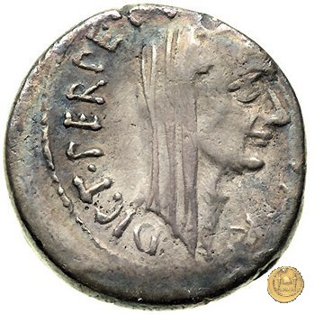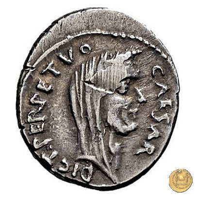 Testa velata e laureata di Giulio Cesare a destra.