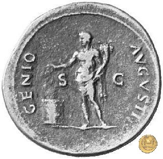Il Genio, drappeggiato e in piedi verso sinistra. In mano una patera, tenuta sopra un altare e una cornucopia.