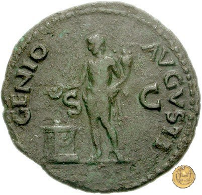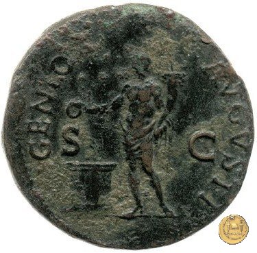 Il Genio, drappeggiato e in piedi verso sinistra. In mano una patera, tenuta sopra un altare e una cornucopia.