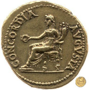 La Concordia, drappeggiata e seduta verso sinistra, con un piede su uno sgabello; nella mano destra una patera, nella sinistra una cornucopia.