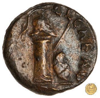 Un elmetto, rivolto verso destra, su di una colonna; in basso, sulla destra, uno scudo circolare con disegnata una Gorgone; dietro una lancia.
