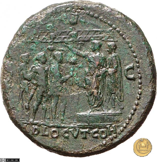 Nerone, togato e rivolto verso sinistra, con un prefetto del pretorio, anch'esso togato, su di una piattaforma sulla destra; la mano destra è rivolta a 3 soldati, in piedi verso destra, disposti su una fila e dei quali i primi due, tengono due stendardi. Nello sfondo, una struttura a semiluna.