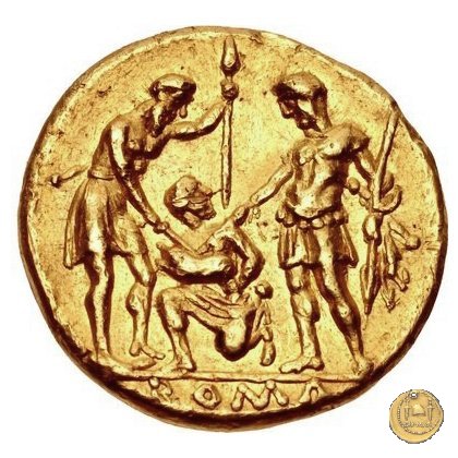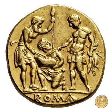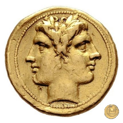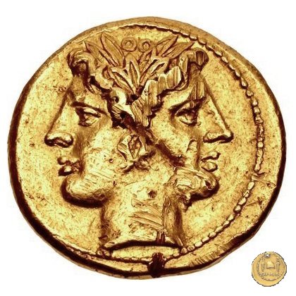 | Incerta è la data di emissione di questa serie aurea: generalmente viene posta tra il 217 e il 216 a.C. poco dopo lo scoppio della seconda guerra punica, in riferimento ad alcuni passi di Livio che ricorda un singolare giuramento effettuato dall'esercito di Roma (dopo le disastrose e ripetute sconfitte romane contro Annibale) ed a un contemporaneo invio di oro a Roma da parte di Gerone II di Siracusa. Per il Thomsen sarebbe stato emesso prima del disastro di Canne del 216 a.C.