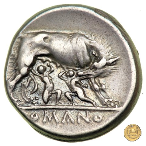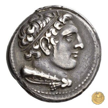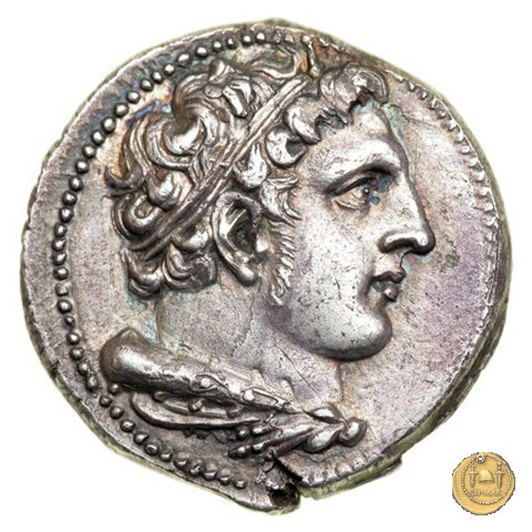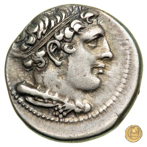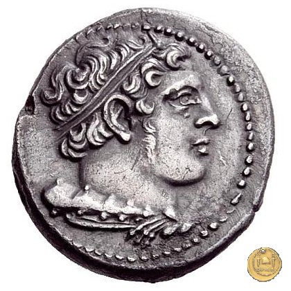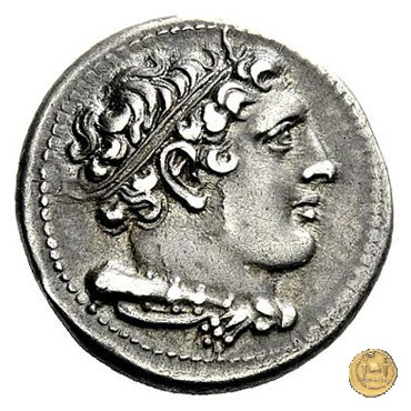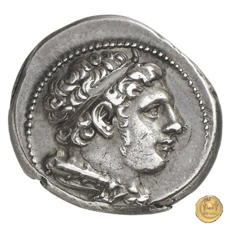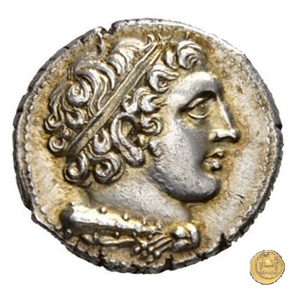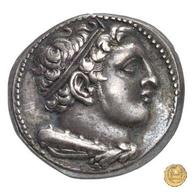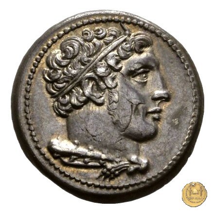 Testa di Ercole a destra, con la pelle leonina legata al collo e con la clava sulla spalla; capelli trattenuti da un nastro.