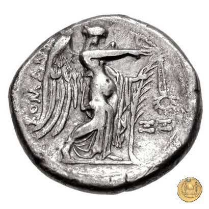| Il Crawford riporta 26 simboli diversi; le lettere dell'alfabeto greco singole vanno da alfa ad omega, quelle doppie da alfa/alfa a omega/omega, e con alfa-beta in monogramma. Il sistema di marche di controllo usato per questa emissione è stato fatto derivare da quello analogo che compare nei tetradrammi d'argento di Arsinoe II d'Egitto, sorella e consorte di Tolomeo II Filadelfo, nel 275 a.C. |