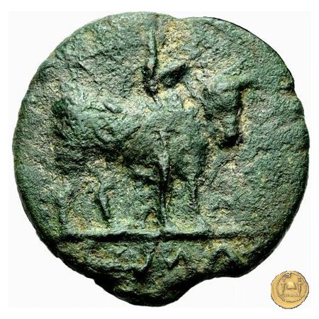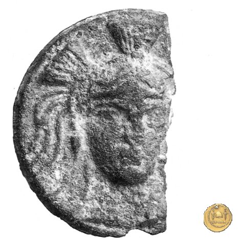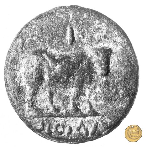 Testa frontale di Minerva, con elmo a triplice cresta. Toro a sinistra. In alto: L oppure I oppure un caduceo. Nell'esergo: ROMA