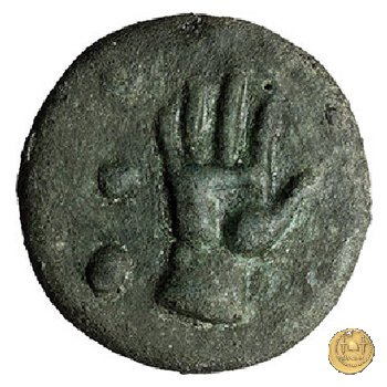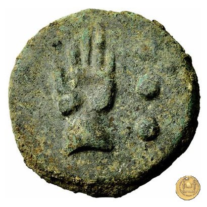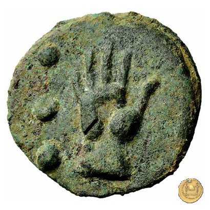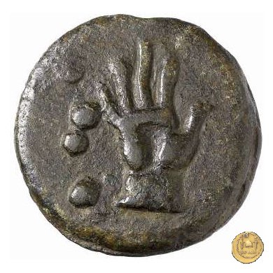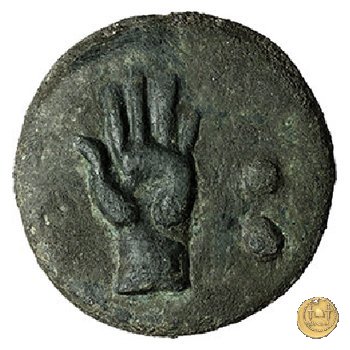 Mano destra a palmo aperto. A lato tre globetti. Mano sinistra a palmo aperto. A lato tre globetti.
