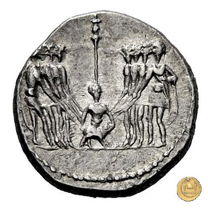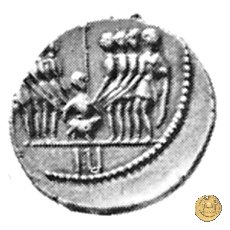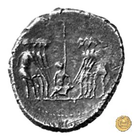 Testa laureata dell'Italia a sinistra, con collana ed orecchino a un pendente. Dietro, verso l'alto: ITALIA Otto guerrieri, quattro per parte, prestano giuramento con le spade puntate verso un maialino tenuto in braccio dal sacerdos faecialis, in ginocchio. Dietro un palo con vessillo. In esergo un numero di controllo.