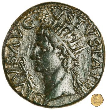 Testa di Augusto radiata e rivolta verso sinistra; sopra una stella e davanti un fulmine.
