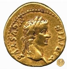 Testa di Tiberio laureata rivolta verso destra.