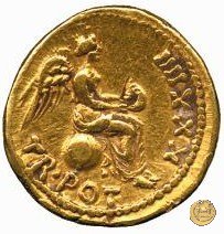 Vittoria seduta su di un globo verso destra; in mano una ghirlanda; l'ala sinistra è visibile.